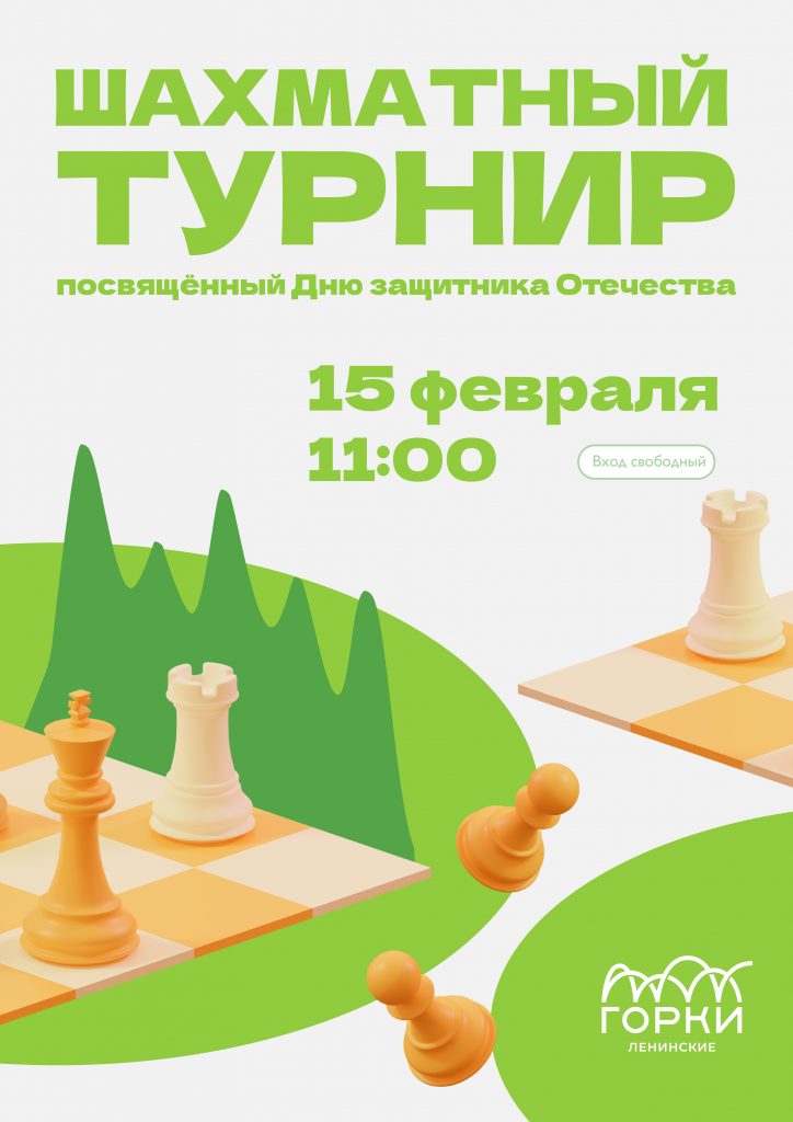 Серия шахматных игр, в которых шахматисты соревнуются, чтобы определить победителя – игрока или команду. Турнир приурочен ко Дню защитника Отечества. Участники турнира: Группа «А»: дети 7 – 11 лет, Группа «Б»: 12 - 16 лет. Регламент: 10 + 5 на партию. Регистрация участников: с 10:15 до 10:45 6+