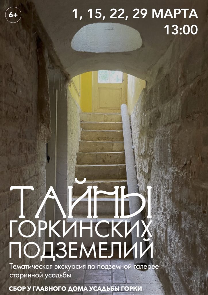 Тематическая экскурсия по подземному ходу, соединяющему Большой дом и Южный флигель усадьбы, посвящена истории белого камня, который добывался в каменоломнях недалеко от усадьбы Горки и из которого выстроена белокаменная Москва и храмы Владимиро-Суздальской Руси. В конце подземного перехода, вы увидите кухню, где готовили самые разнообразные блюда, подававшиеся к столу в гостиной большого дома. Программа доступна по Пушкинской карте.