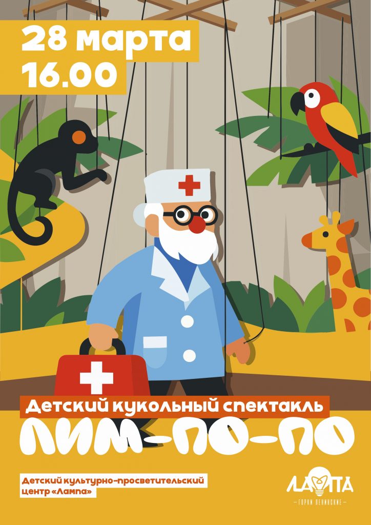 Детский спектакль от театра кукол «Петрушкина слобода» - любимая сказка про доктора Айболита ко дню рождения писателя К. И. Чуковского.