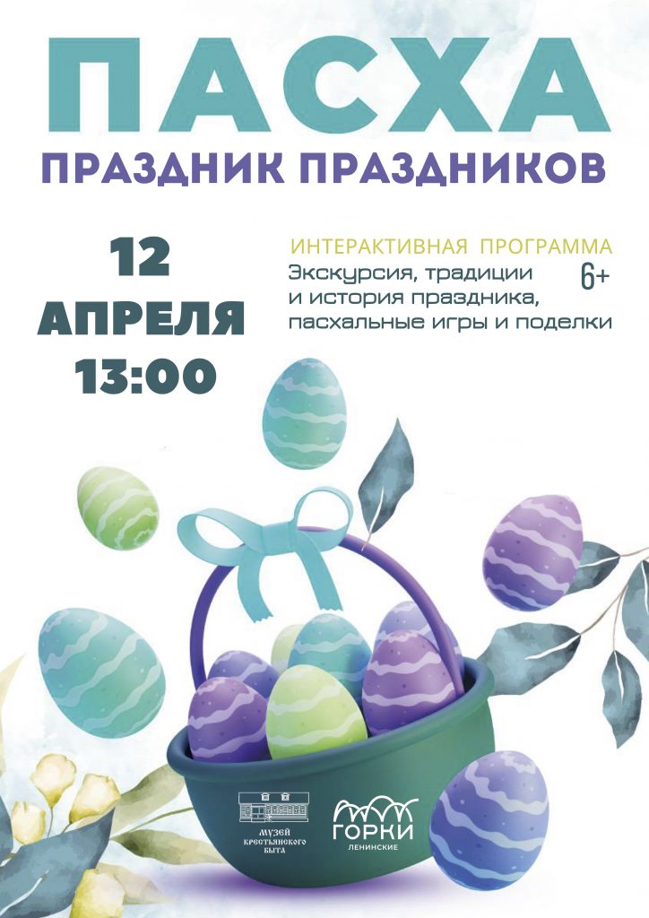 Праздничная пасхальная программа включает в себя экскурсию по музейной экспозиции, мастер-класс по изготовлению подарка (объемная поделка из цветной бумаги «Пасхальное яйцо», игрушка-качалка «Цыпленок», Петушок и Курочка на палочке, корзиночка из цветного картона), а также старинные пасхальные игры.