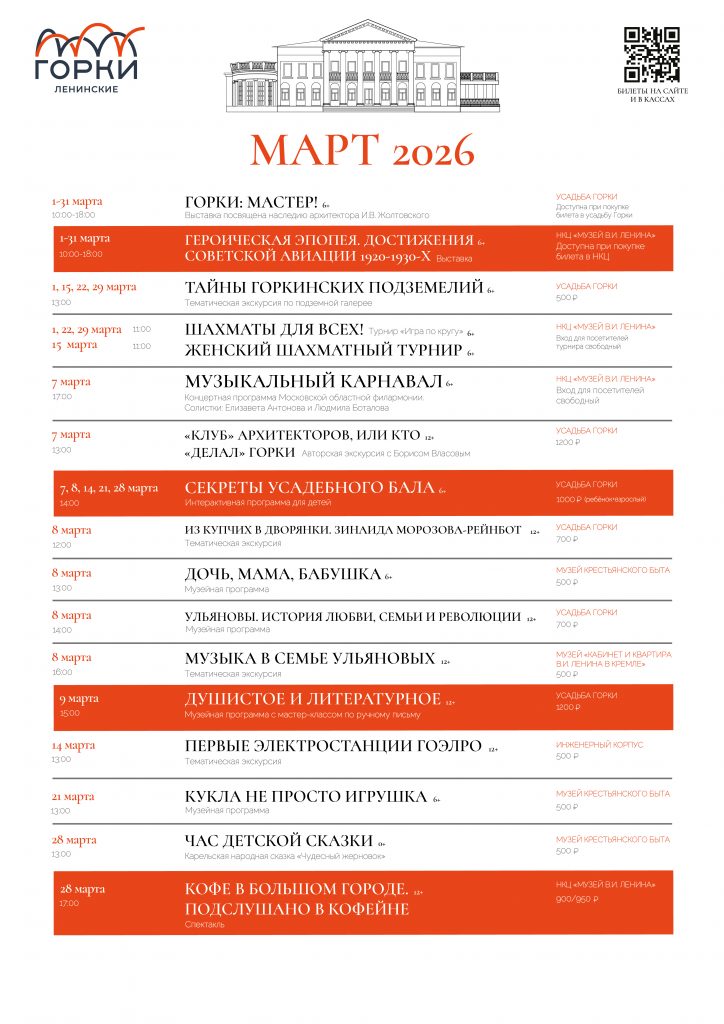 На авторской экскурсии Бориса Власова, советника директора по научной работе – ученого секретаря музея-заповедника «Горки Ленинские», мы совершим исследовательскую прогулку по всему усадебному комплексу и раскроем секреты, накопившиеся за двести лет истории, а также узнаем, кто решил обустроить дворянское гнездо в Горках, сколько денег было потрачено на реконструкцию усадьбы супругами Рейнбот, зачем в Горках рыли подземные ходы и как функционировало электричество в начале ХХ века.